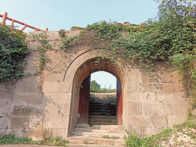 我们从新建的大门步入山寨,一股古朴的气息便扑面而来。左侧是一道石拱门——东寨门,门洞厚约3米,门洞顶部圆弧上的石刻图案精致,底部两侧的长条石是人们纳凉的座椅。穿过门洞,来到岩边,寨墙石缝里的黄桷树枝叶茂盛,它的根牢牢地抓住岩石,向阳而生。那历经岁月沧桑的黄桷树,仿佛是一位沉默的守护者,静静地伫立在时光的长河中,见证着山寨的兴衰变迁。石门上的纹路,是岁月刻下的痕迹,每一道都诉说着古老的故事。